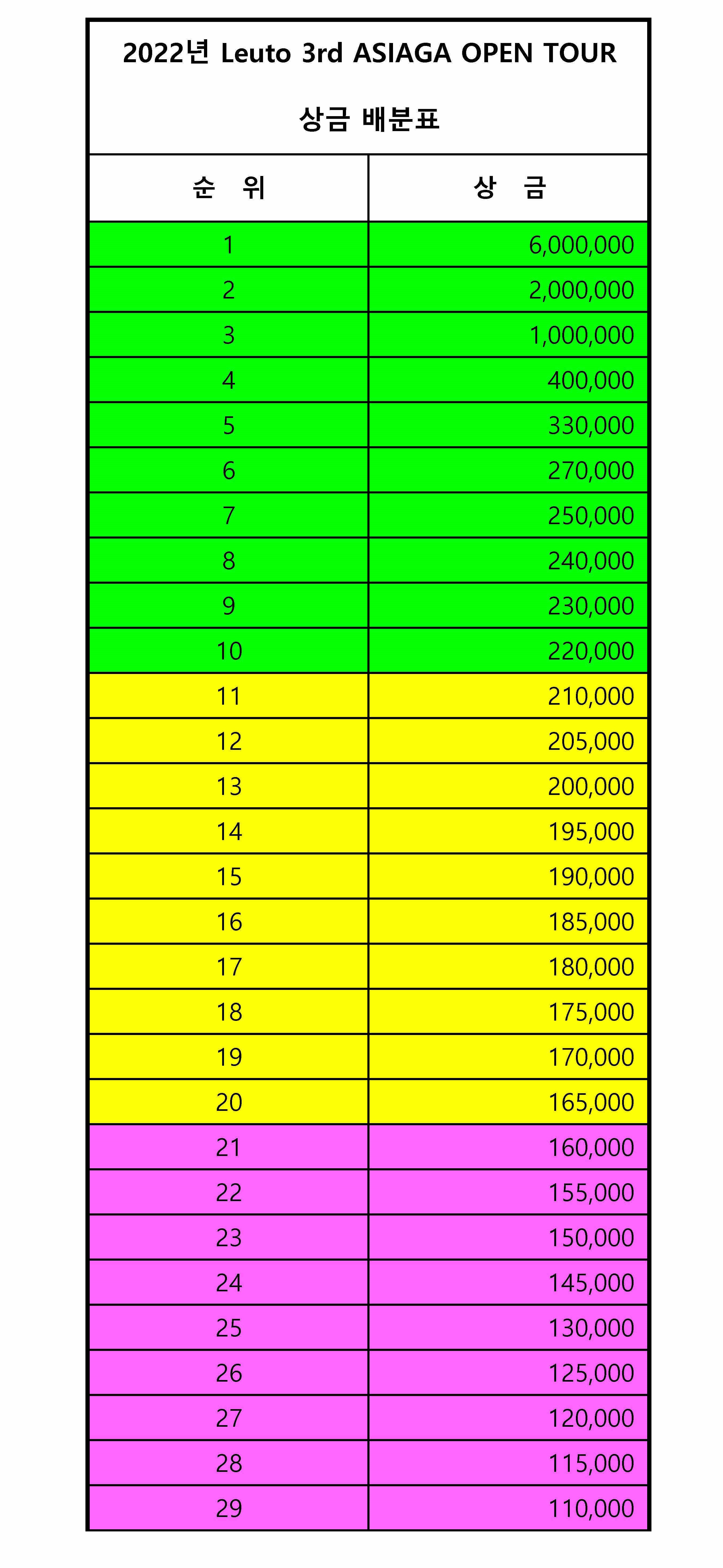 Leuto 4th ASIAGA OPEN TOUR 조편성 및 상금배분표
