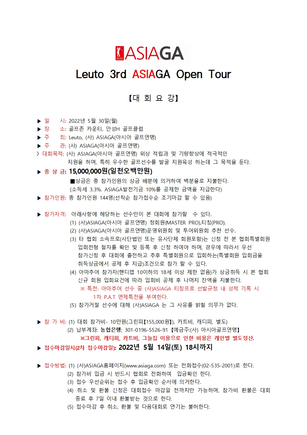 Leuto 4th ASIAGA Open Tour 정회원2차접수시작. (1차 접수는 7월 20일부로 마감)